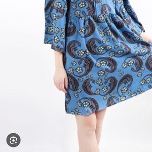 ๐ EUC For Love And Lemons Blue Paisley Bell Sleeve Babydoll Mini Dress Sz S