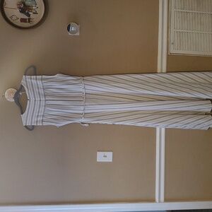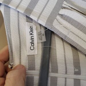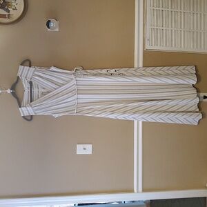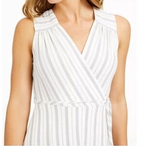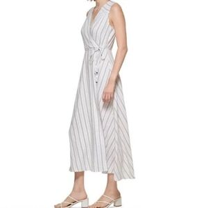 Calvin Klein White Grey Faux-Wrap Striped A-Line Maxi Dress Size 10 NWOT'S