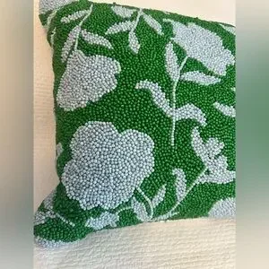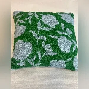 Kate Spade Target beaded Floral Green and Blue Throw Pillow 12x12