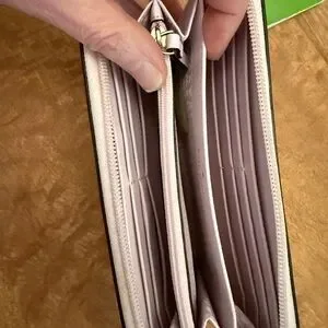 Inside: zip coin pocket; 12 card slots; 3 open sections; 2 full-length currency slip pockets— clean inside only worn couple times!