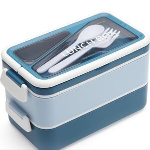 Stackable Lunch Box 1600ml 2 Layer Reusable Bento Box with Spoon & Fork