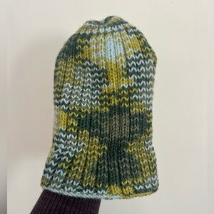 This stylish knit beanie keeps your child warm and cozy. Featuring a blend of green and yellow, it's perfect for any chilly day.