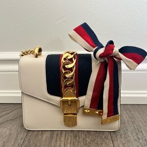 Authentic Gucci Mini Sylvie Cream Crossbody Bag with Bow