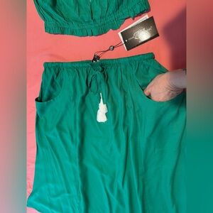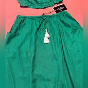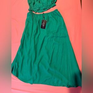 Elegant green skirt set featuring a stylish embroidered detail. Perfect for a chic and comfortable look.