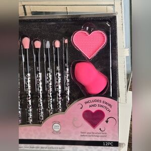 Stylish brush set with pink bristles and leopard print handles. Perfect for full face makeup application. Great gift this Valentines Day.