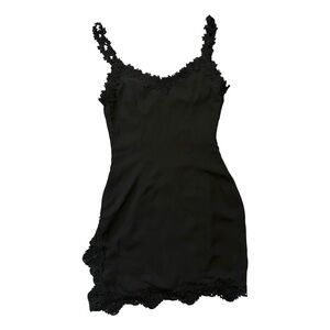 Style tags: superdown, black slip dress, lace trim dress, lingerie inspired, y2k dress, coquette aesthetic, soft girl style, femme fatale, date night dress, mini dress, sexy minimal, 90s vibe, night out outfit, sleek silhouette, romantic black dress, party dress, it girl energy, satin look, girly but edgy, trendy resale