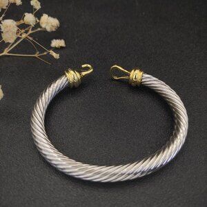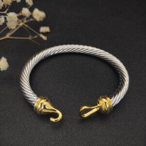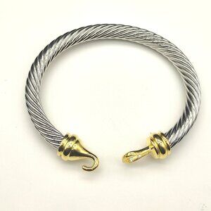 Stylish cable bracelet with gold hook accents. Iconic twisted design by David Yurman.