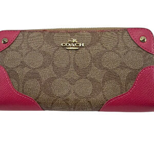 Coach Accordion Zip Brown Pink Signature Canvas Wallet