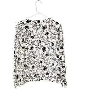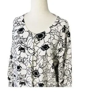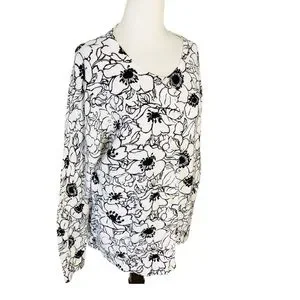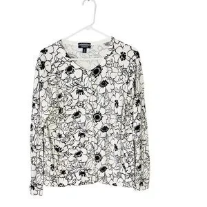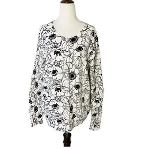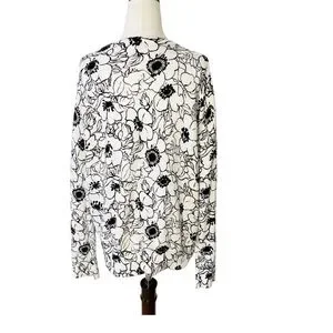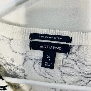 LANDS' END Floral Cardigan Black White Supima Cotton Size XL 18