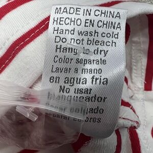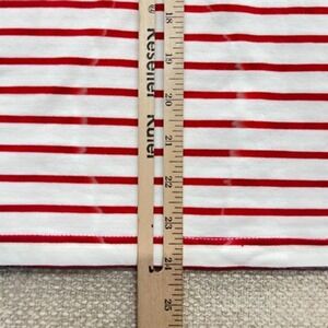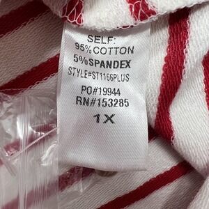 Able Shirt Womens 1X White Red Stripe Long Sleeve Boat Neck Button Jersey Top