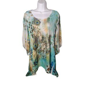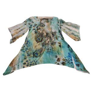 Cal Style Y2K Women's Peacock Fairy Knit Top M Boho Sharkbite Studded Artsy USA