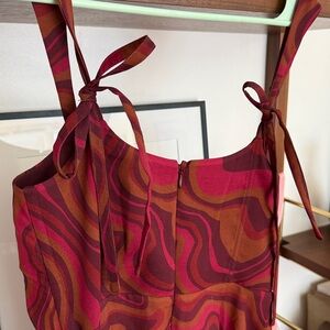New with tags! Cute swirly chiffon fabric, with a little corset detail. Super short, so flirty and fun.