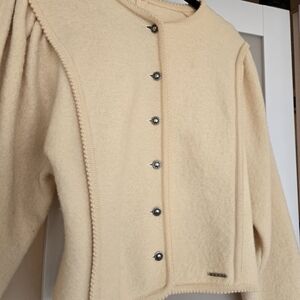 1980s Vintage Geiger Ivory Boiled Wool Embroidered Jacket Size 40 Made in Austria.