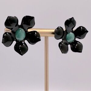 Black & Turquoise Enamel Flower Earrings