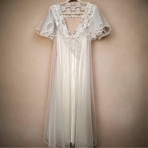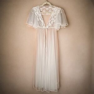 Vtg Val Mode 2 Pc Peignoir Set White Asymmetrical Lace+Luxuriously Sheer Robe