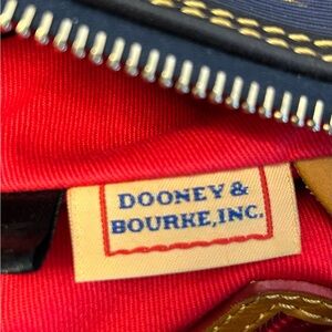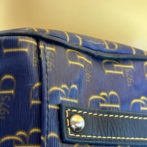 Dooney & Bourke Navy and Gold Monogram Satchel Approx. 11 x 9.5 x 4.5
