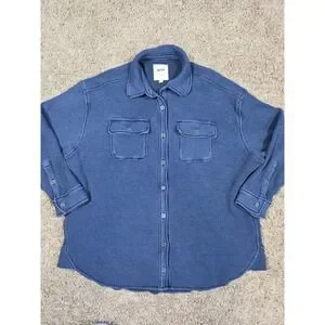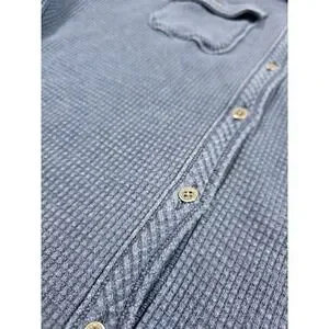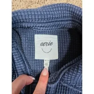 Wrap yourself in cozy comfort with this Aerie waffle knit shirt jacket. The rich blue hue and textured waffle knit create a relaxed yet stylish look. Two chest pockets add a touch of classic utility, while the button-down front and long sleeves offer versatile wearability. This piece is perfect for layering over your favorite tees or wearing as a light jacket on cooler days. Ideal for casual outings, weekend adventures, or lounging at home.