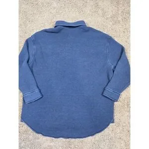 Aerie Oversized Lumberjane Waffle Knit Button Down Shirt Blue Long Sleeve - XS