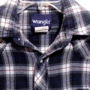 Wrangler Men’s Western Black White Plaid Pearl Snap Flannel Shirt.