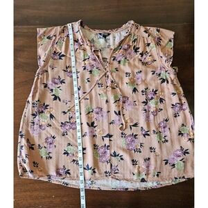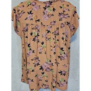 Buffalo David Bitton Blouse Womens Large Pink Floral Short Sleeve Boho Top Tie Neck
