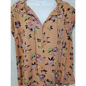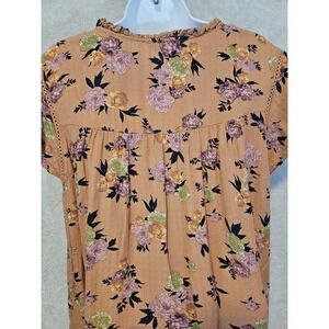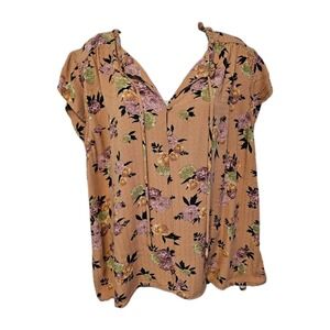 Buffalo David Bitton Blouse Womens Large Floral Short Sleeve Boho Top Tie Neck