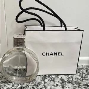 CHANEL Chance Eau Tendre Eau de Toilette (EMPTY) with small CHANEL Shopping Bag