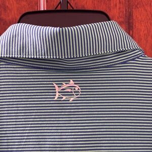 NWT Southern Tide Men's M Meadowbrook Stripe Polo in Parakeet w Pimento Cheese