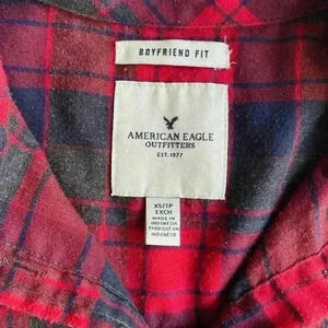 American Eagle Outfitters Flannel button up shirt. Boyfriend Fit. Size XS. 55% Cotton 45% polyester. Chest pocket left front. Back is 3” longer than the front.
