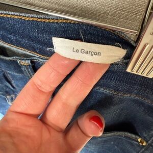 Chic dark blue ankle Le Garçon jeans by Frame Denim in Primrose wash. Jeans are in gently used condition and just starting to lose some of their structure.