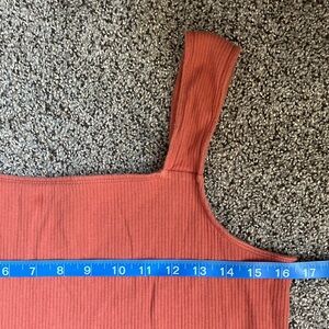 Elevate your wardrobe with this stylish rust sleeveless top with wider shoulder straps and square neckline. Perfect for any occasion, this top offers both comfort and elegance.