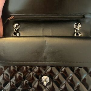 Pre loved with sign of wear. Scratches on patent leather from use. This bag has been professionally repainted on the inside only. Zipper faded. Please look at the photos.