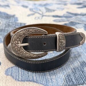 Wide leather belt with chunky silver tone hardware by The Ritz