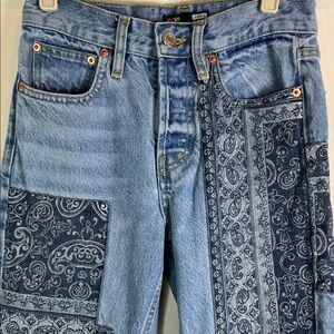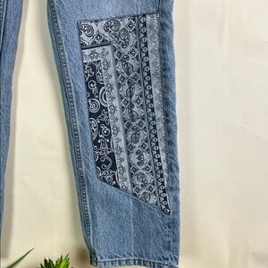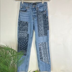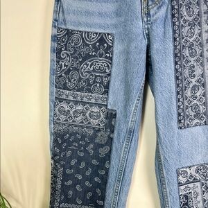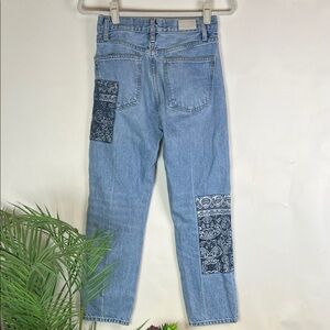 Maje Bandana Patched Boyfriend Jeans Blue US Size 0 France Size 34