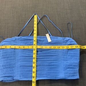 Madewell NWT Wendy Ornamental Blue 12 Pleated Cotton Poplin Crop Top Cotton Square Neckline Casual Beach Pool Garden party Vacation Travel