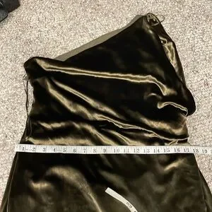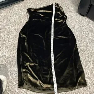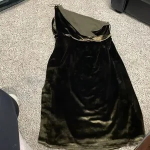 Reiss One Shoulder Velvet Dress in Dark Olive