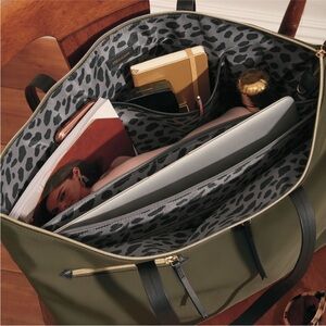 This is the perfect work bag! Has a removable laptop bag in the center.