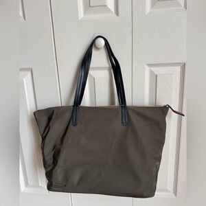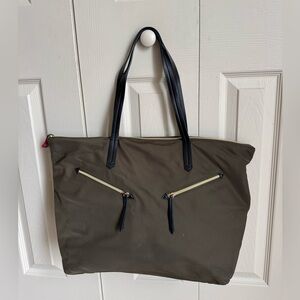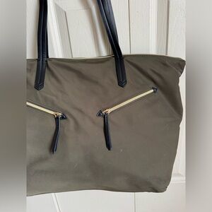 Stella & Dot Lady Boss bag in olive green nylon with black handles.