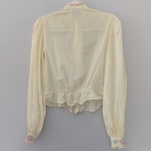 Vintage Blouse Top Embroidered Floral Button Up size Medium