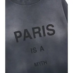 The Jaci Sweatshirt Myth Paris is an oversized crewneck pullover made from our signature French terry fabrication in a sun-faded charcoal ombre wash. This cozy separate features a screen printed 2000s-inspired tonal graphic on the front, celebrating the multilayered nature of Paris.