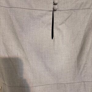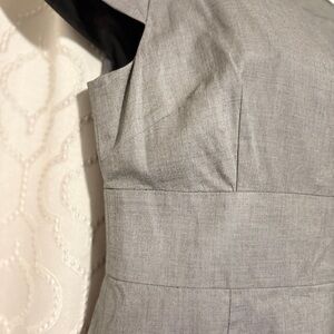 Sophisticated gray fitted dress with cap sleeves.Notice the pleat on each shoulder with a side zipper for the perfect fit. Perfect for work or evening outings. Timeless design by Banana Republic.