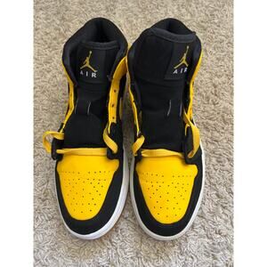 Selling a clean pair of 2017 Air Jordan 1 Mid New Love Size 7 Men. Upper suede material doesn’t have any flaws. Left heel has minor indentations. A couple of tow box creases. Comes with yellow laces. No original box.