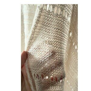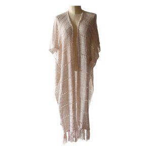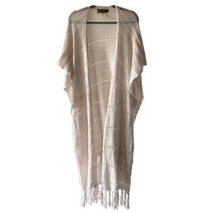 Beautiful lightweight Free People blanket wrap with an airy open-knit texture and tassel fringe. This is an older, harder-to-find Free People piece - part shawl, part wrap, part statement layer.