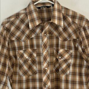 Vintage JCPENNEY brown white gold long sleeve button down western shirt Size L