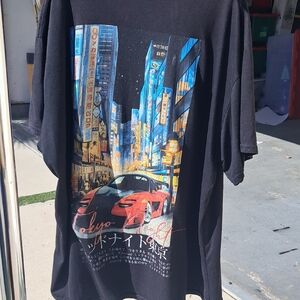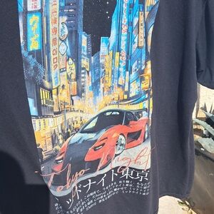 Experience the thrill of Tokyo nights with this black graphic tee, featuring a vibrant car design. Perfect for casual outings.