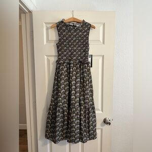 NWT Tuckernuck HYACINTH HOUSE Black Leafy Floral Smocked Seaton Midi Dress