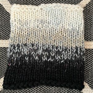 Cozy chunky knit infinity scarf. Features a gradient of black, gray, and cream colors that have been sourced from various vintage sweaters.