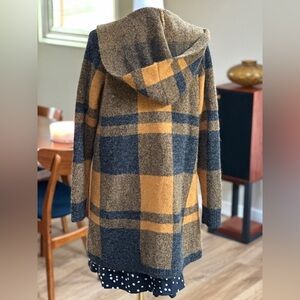 Cyrus Plaid Hooded Sweater Coat In Golden Spice in burnt orange and black