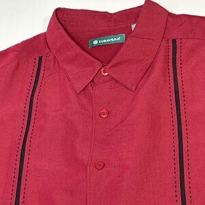 Cubavera XXL Burgundy Embroidered Mens shirt Button Up Short Sleeve Top