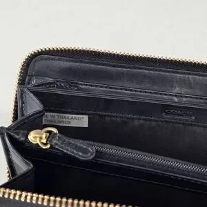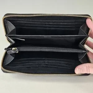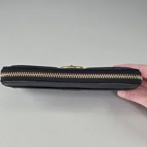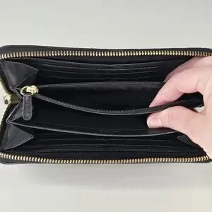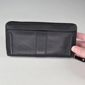 Coach Campbell Black Leather Zip Around Clutch Wallet Gold Hardware