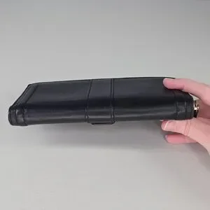 This Coach Campbell Zip-Around Continental Clutch Wallet is crafted from smooth black leather and finished with gold-tone hardware. The zip-around design opens to a well-organized interior featuring multiple card slots, full-length bill compartments, and a center zip coin pocket, making it functional as both an everyday wallet and a slim clutch. Classic Coach styling in a timeless black leather silhouette.
